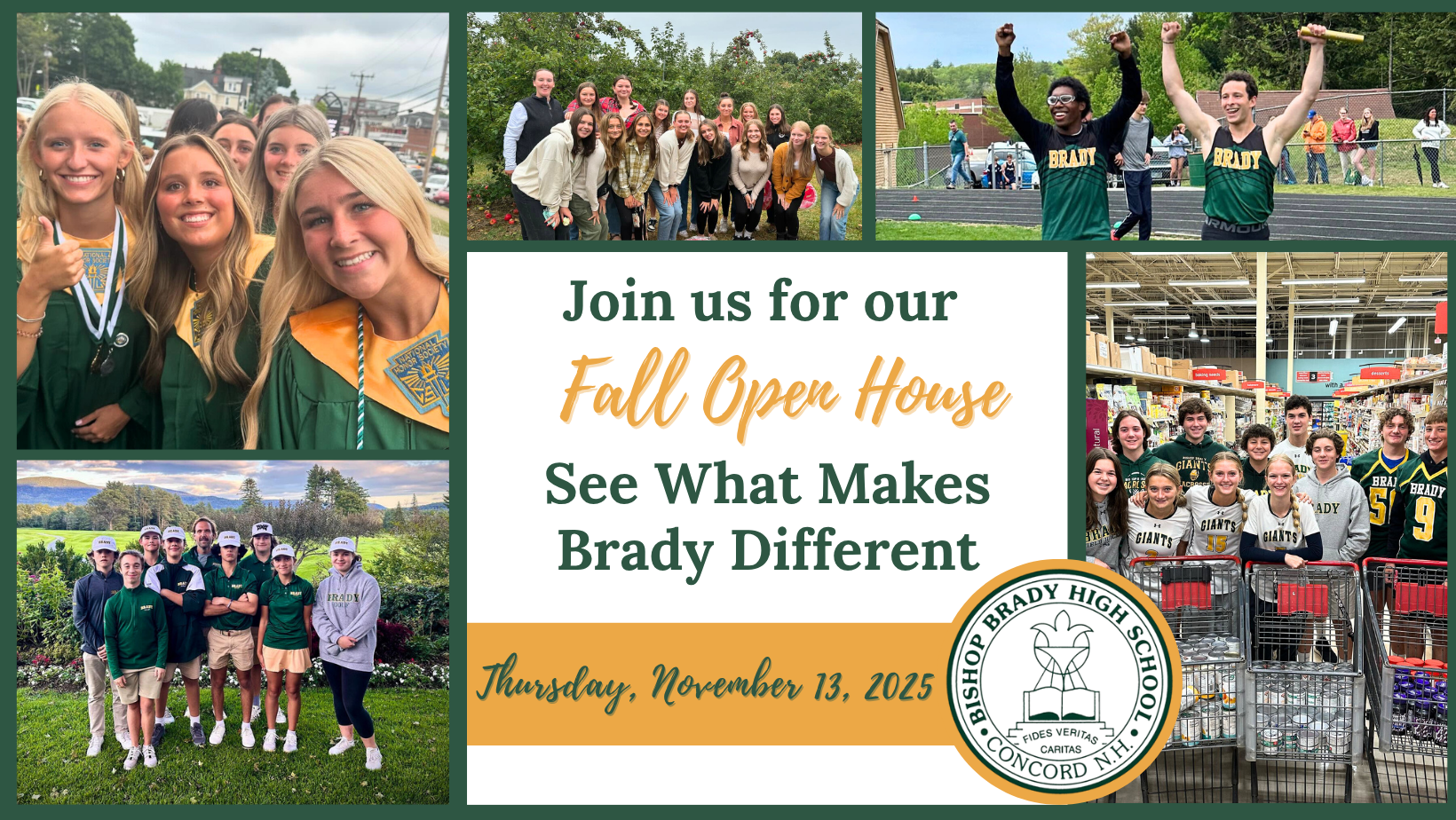 Bishop Brady, along with our predecessor St. John High School, has provided a quality college preparatory experience in Central New Hampshire for over 90 years. This year, Brady celebrates it's 60th Anniversary as a school as well as the 25th Anniversary of our Galloping Gobbler Road Race and the 10th Anniversary of our Annual Salute to our Veterans.